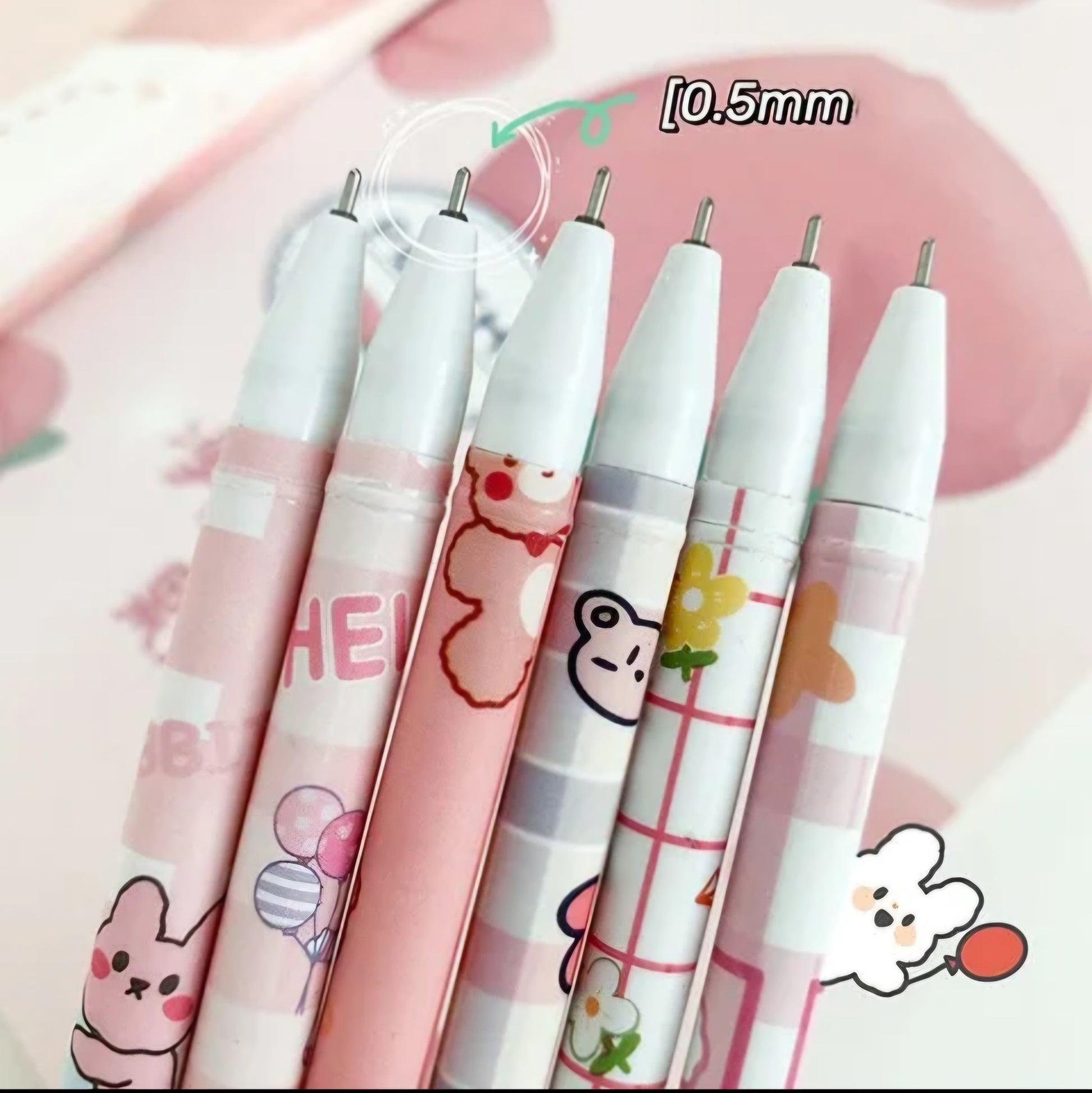 0.5 mm pen tip with eraser attached. Comes with 5 pens